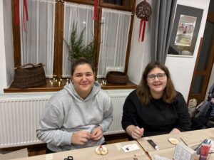 „A kézműves foglalkozás során újra együtt volt a csoportom, hiszen a kisebbeknek és társainknak is segítettünk. Nagy öröm volt újra együtt látni a csapatot, és még jobban feltöltött minket, hogy közben hasznosat alkothattunk is. Az érdeklődő családok és diákok három különböző asztalnál kreatívkodhattak, ahol szükség esetén a legnagyobb figyelemmel segítettünk. Készültek karácsonyra hangoló fa, de papír díszek is, amik remélhetőleg ezen nap emlékét őrzik majd a továbbiakban. Az egyetemi vizsgákkal teli, zsongó napok után valódi feltöltődés volt végre visszatérni egy ilyen, hozzánk közel álló helyre. Nagy örömmel lapoztuk az idei évkönyvünket, jókat mosolyogtunk magunkon, és érdeklődve néztük végig a többi közösségi házak képeit. Külön ajándék volt számomra az idei összművészeti tábor kiadványa, ami szerintem nagyon szép lett, köszönjük szépen!” Tamasi Tilda Jászság 3-as csoport